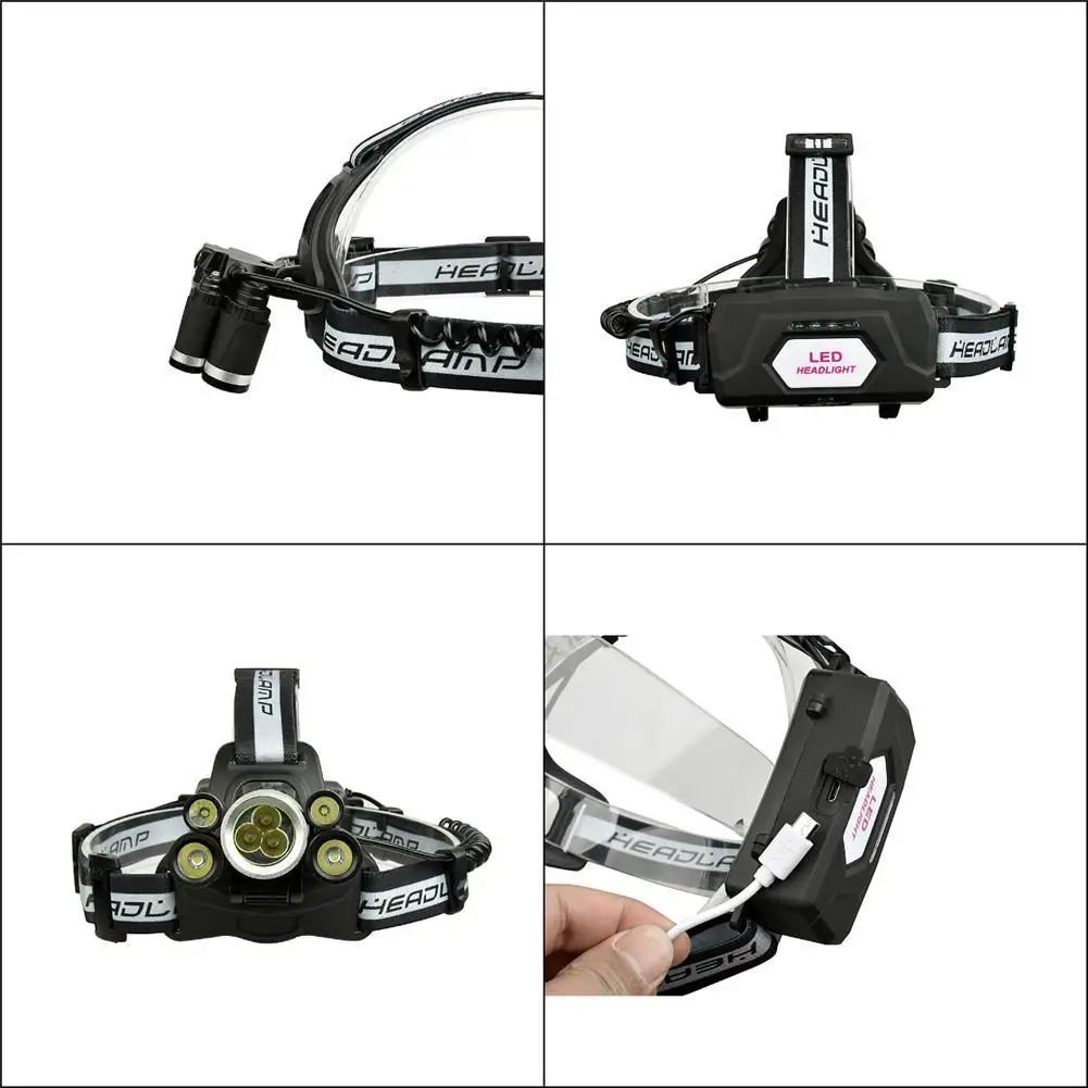 7LED Glaring Outdoor Fishing Headlight Rechargeable Light With Power Display Headlight With SOS Sur