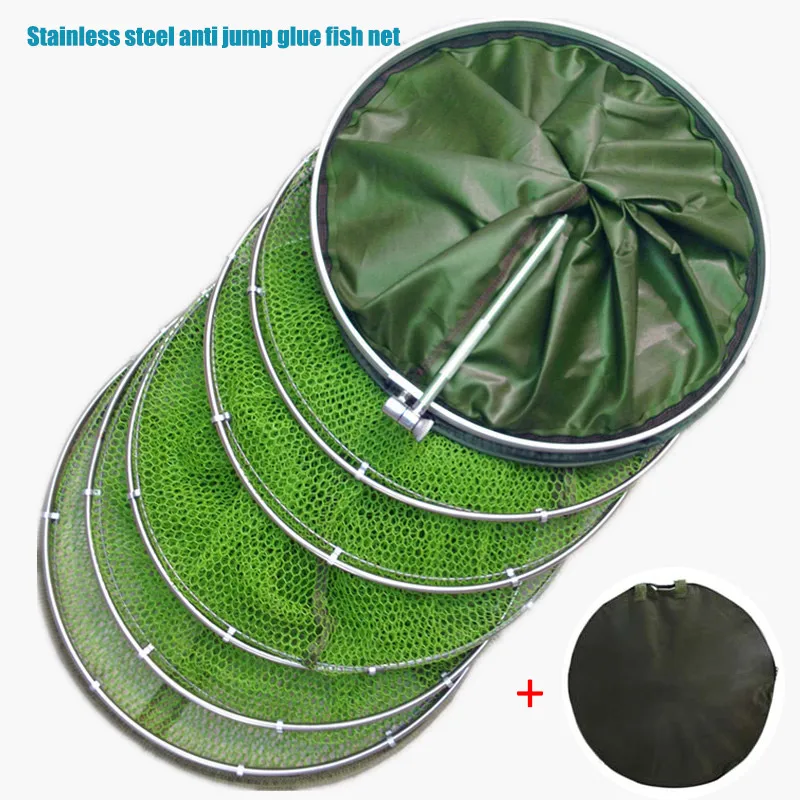 BEST High Universal Fishing Net Stainless Steel Double Ring Fish Care Anti-hanging Net Tool for Fishing