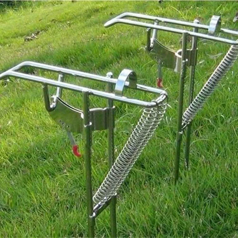ORIGINAL Stainless Steel Fishing Rod Holder Rack Automatically Pulls Back Portable Double Spring JT-Drop Shi